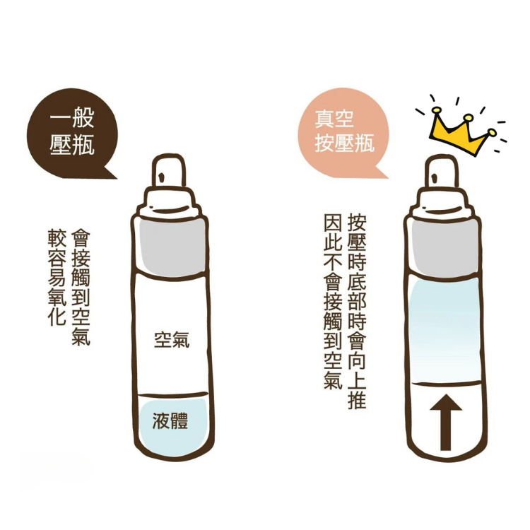 .每一滴保持最初的新鮮-真空按壓瓶保鮮技術